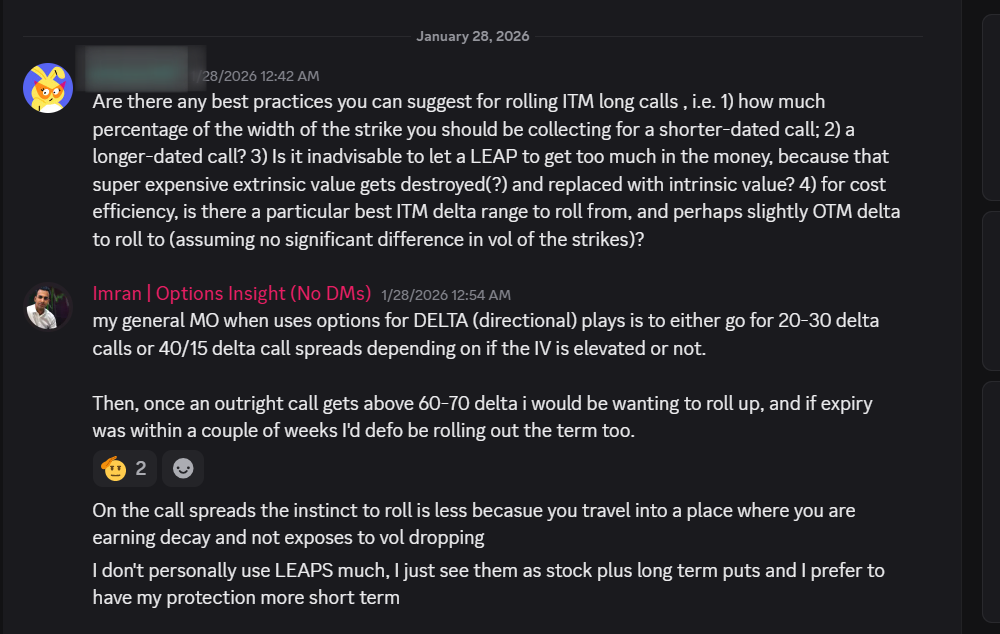 “I roll from one ITM strike to a higher ITM strike… so I should pocket most of the intrinsic difference, right?”