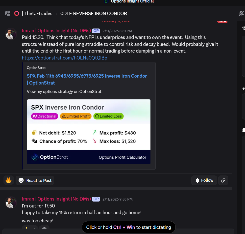 Last week I used the structure below instead of pure long straddle to control risk and decay bleed ahead of US jobs.